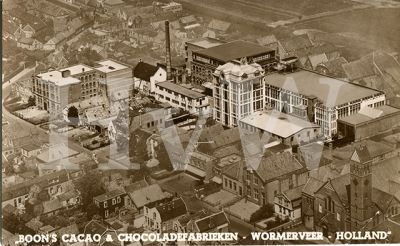 Luchtfoto Boon's Cacao & Chocoladefabriek te Wormerveer